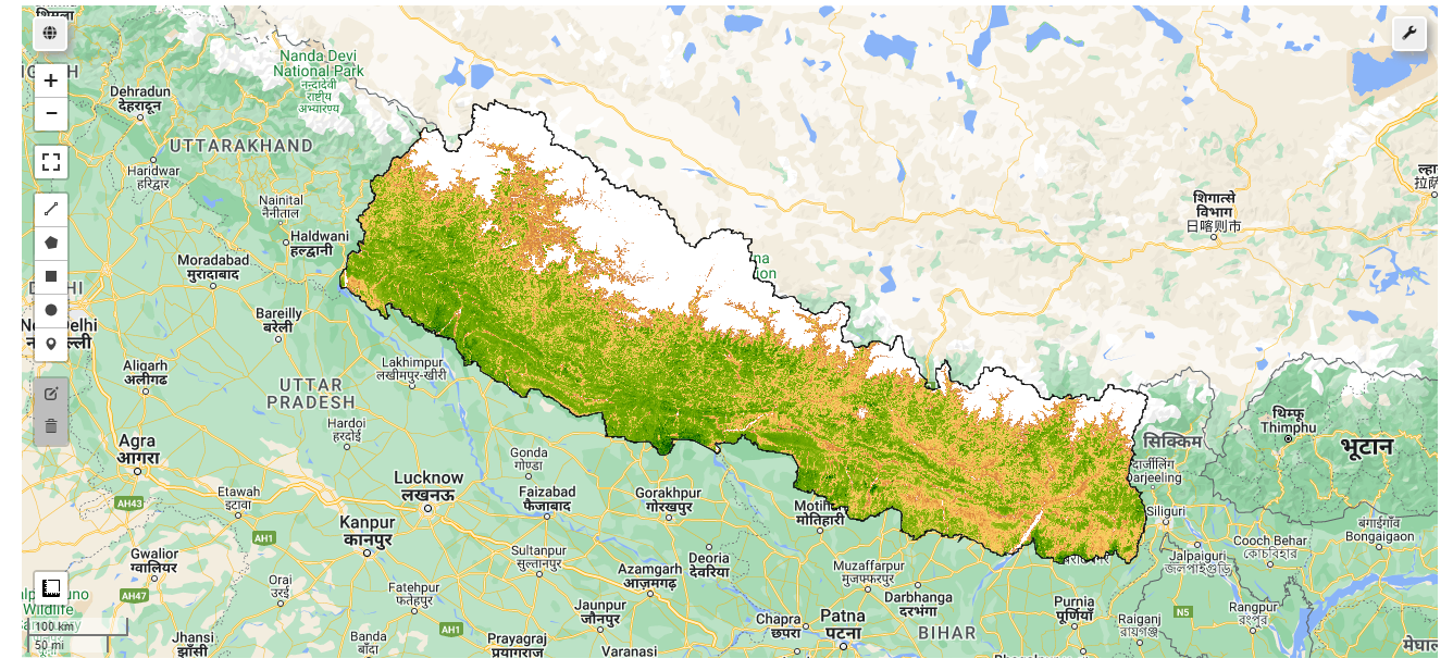 - Choose area of interest for the study. In my case i have taken Boundary of Nepal.