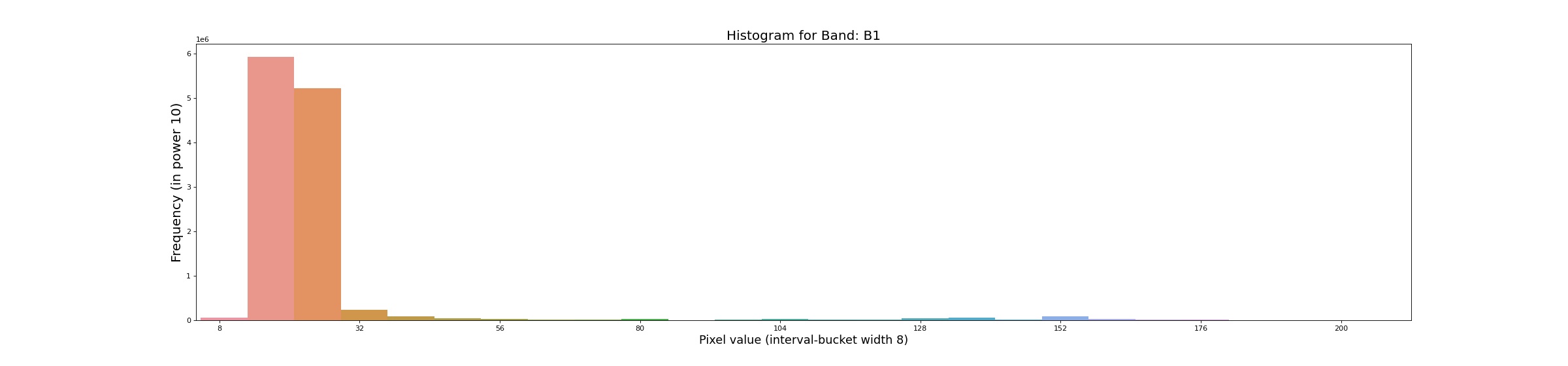 Here is the some output of the histogram of bands of image. Please visit the github site for all outputs.