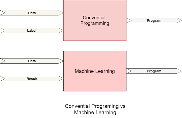 Now we will go through difference between convential programing and machine learning. Figure illustrate alot here. Though i will try to illustrate few highlights.